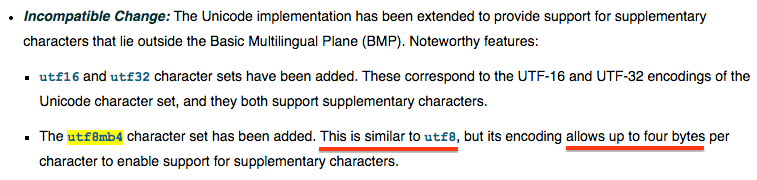 자 위에서 설명된 내용 중 현재 우리에게 가장 중요시되는 부분은 4Byte 문자를 지원한다는 것이다.