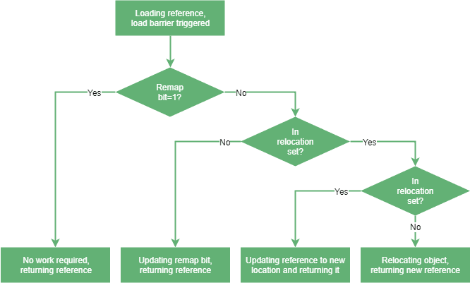 - Concurrent Relocate: 이후 Load Barriers 를 사용하여 모든 객체를 재배치 및 참조 수정